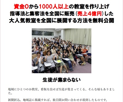 お教室の生徒募集のためのLPは、ブログの案内記事のように、お教室について1ページで説明しているページです。