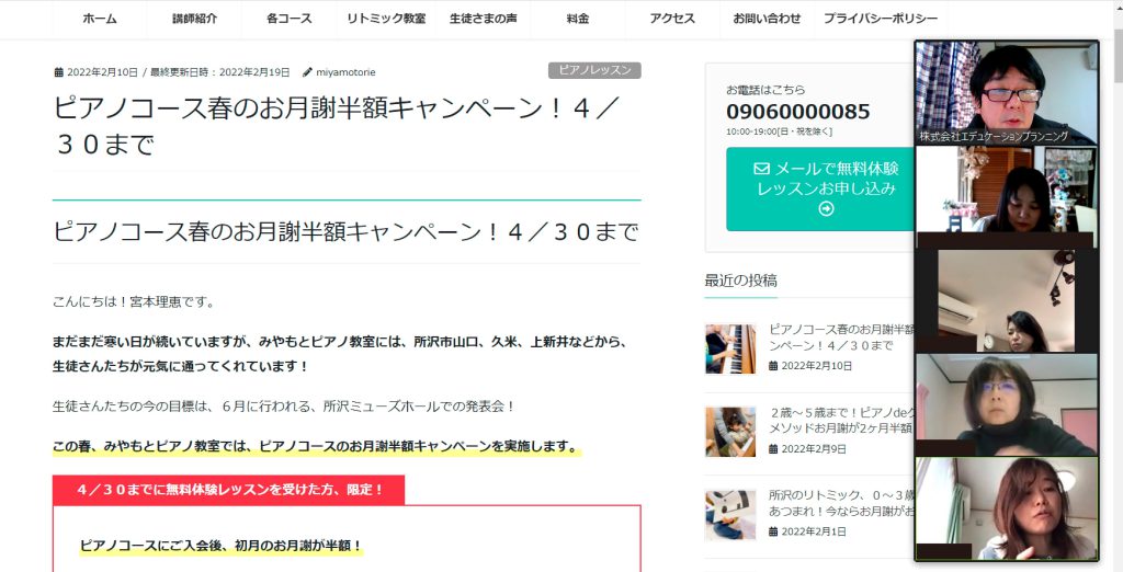 今回ご新規の方は、HPのタイトル修正(地名キーワードを入れること)、これからのブログ投稿の書き方などもお話しました。